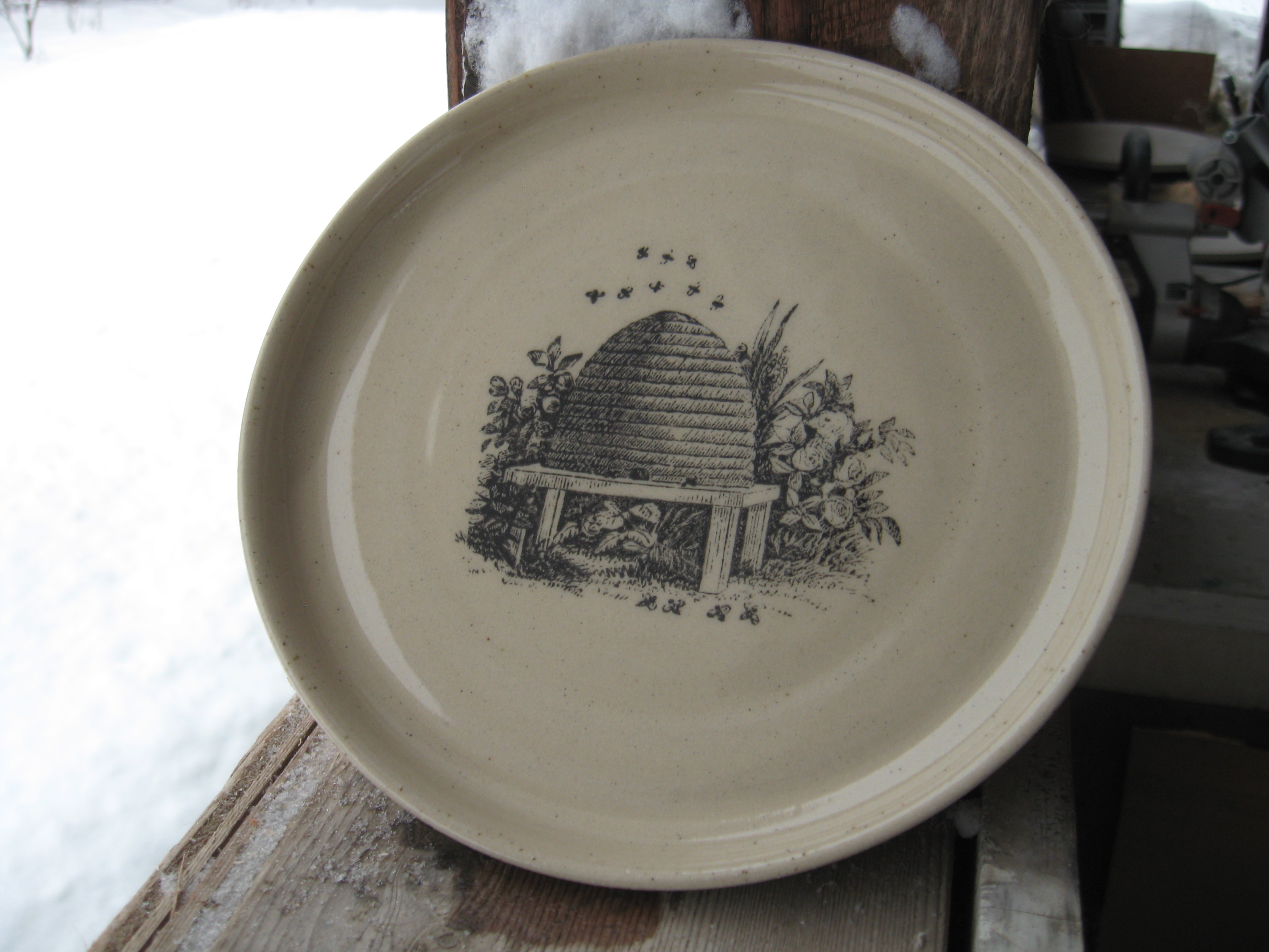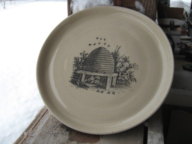 This small precious plate / coaster displays a furry honey bee. It measures roughly 5″ in diameter.