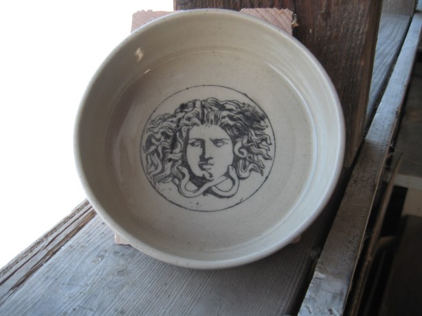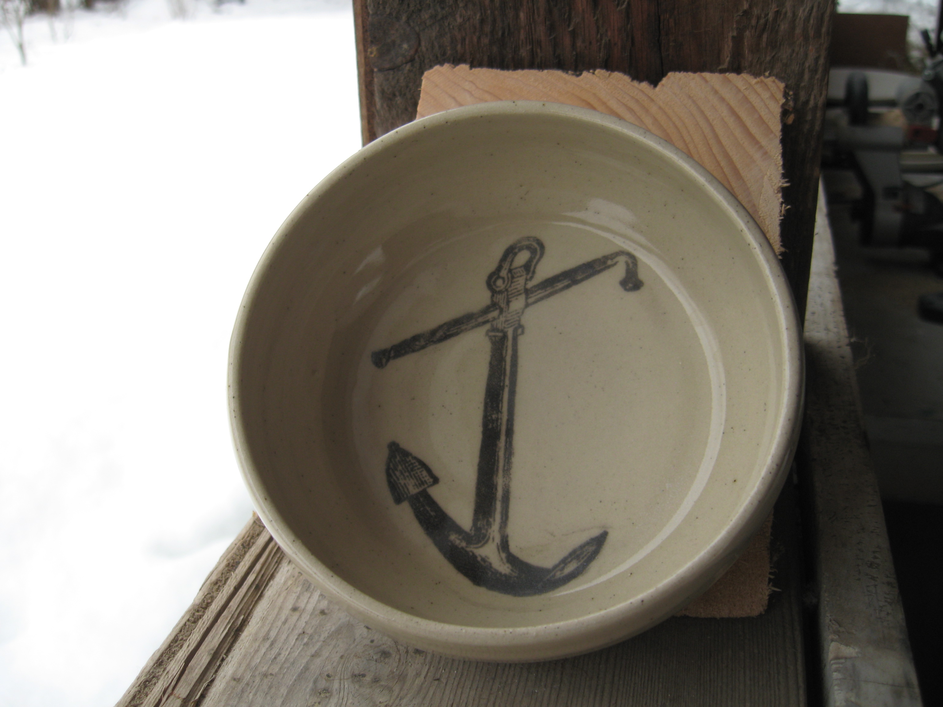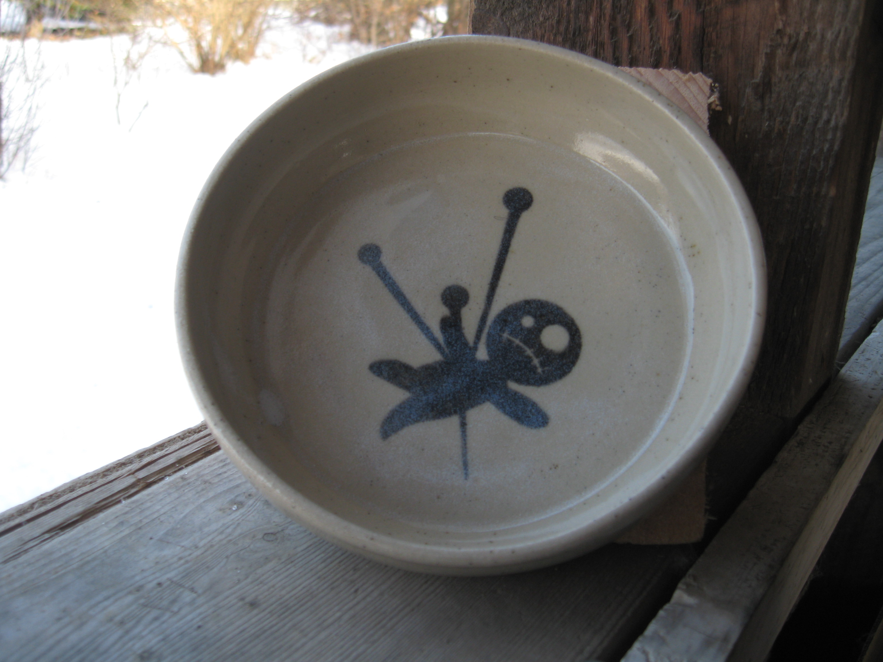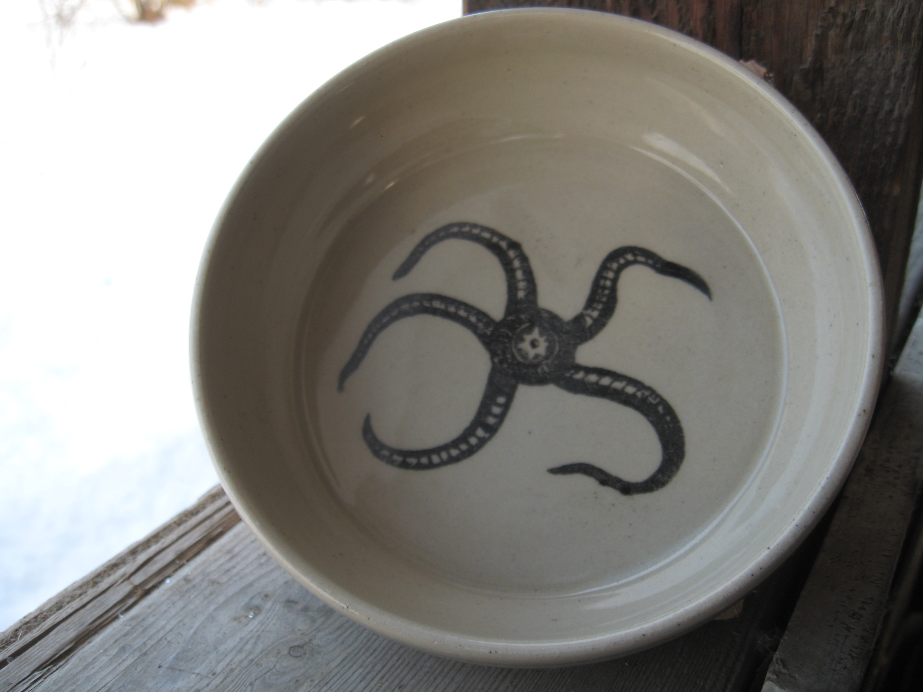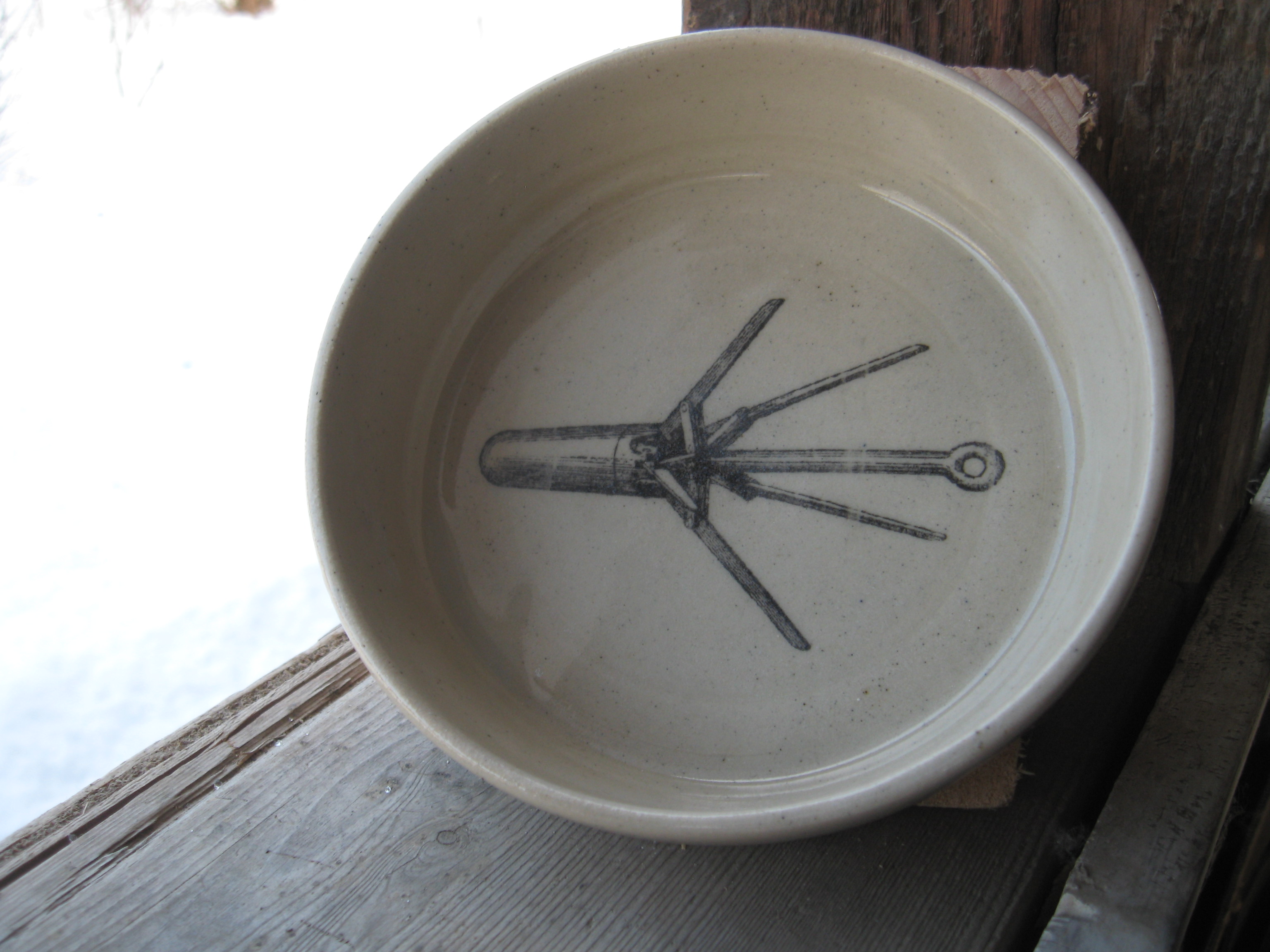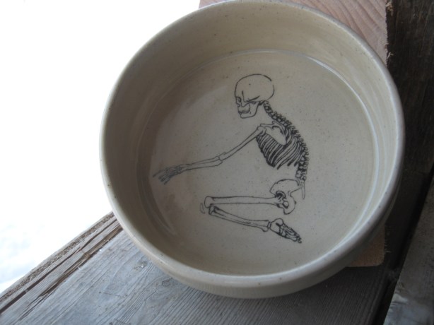 The next mug indicates my newer style of leaving the external portion of the mug more pure with only clear glaze over an image. This not only allows me more room for the image (hence, a larger image) but it also provides a greater contrast between the black of the image and the natural colour of the clay.