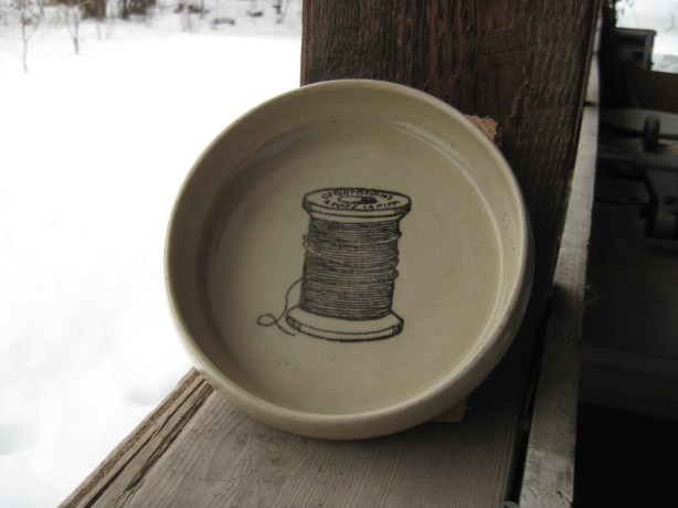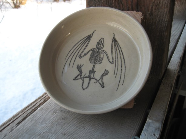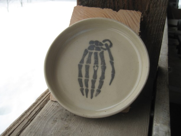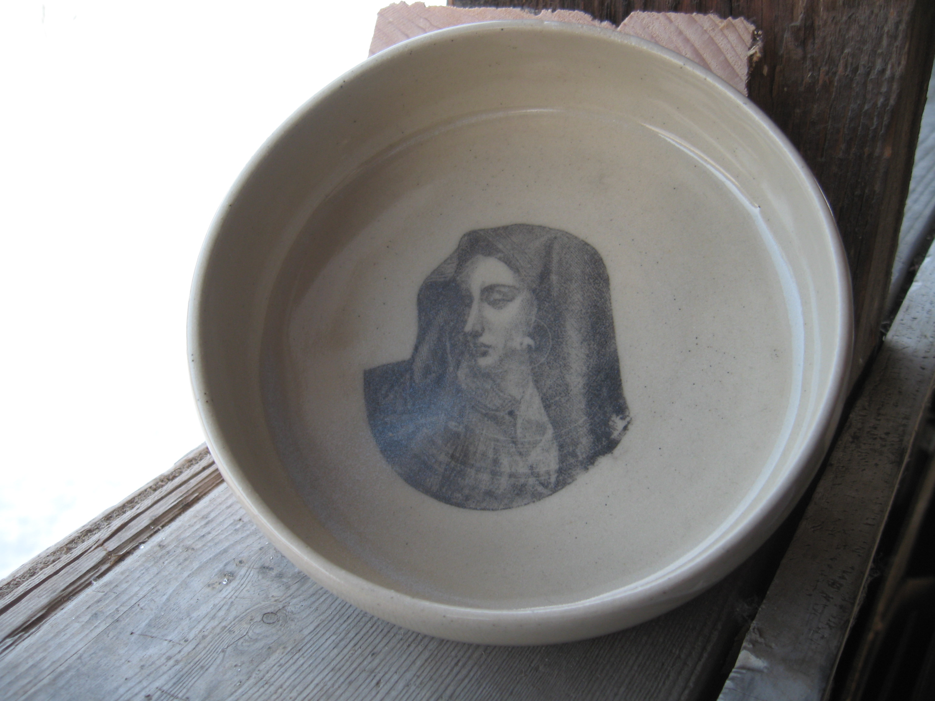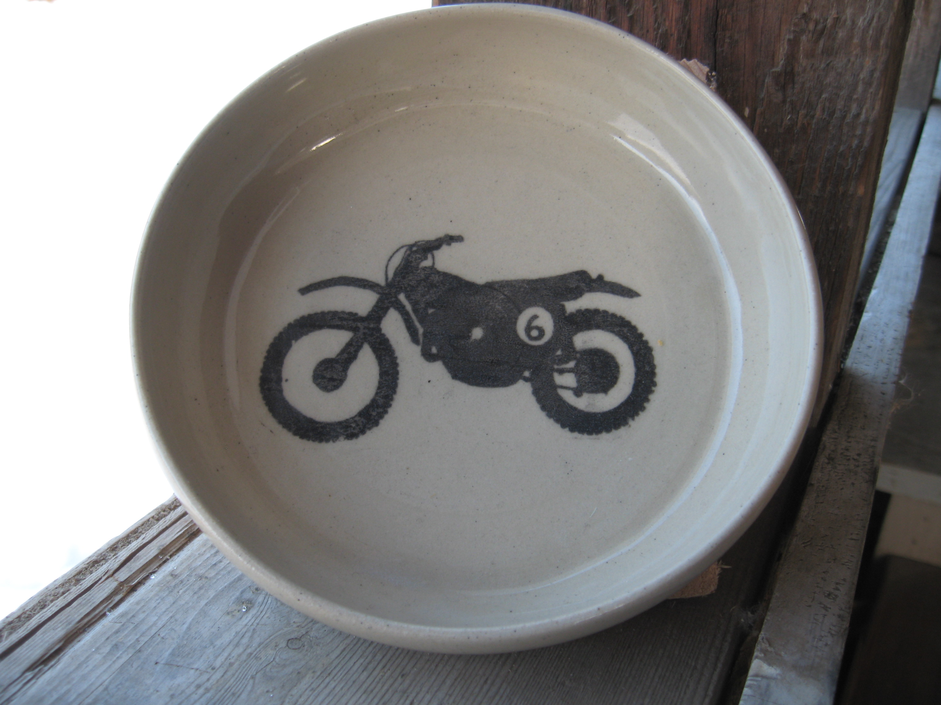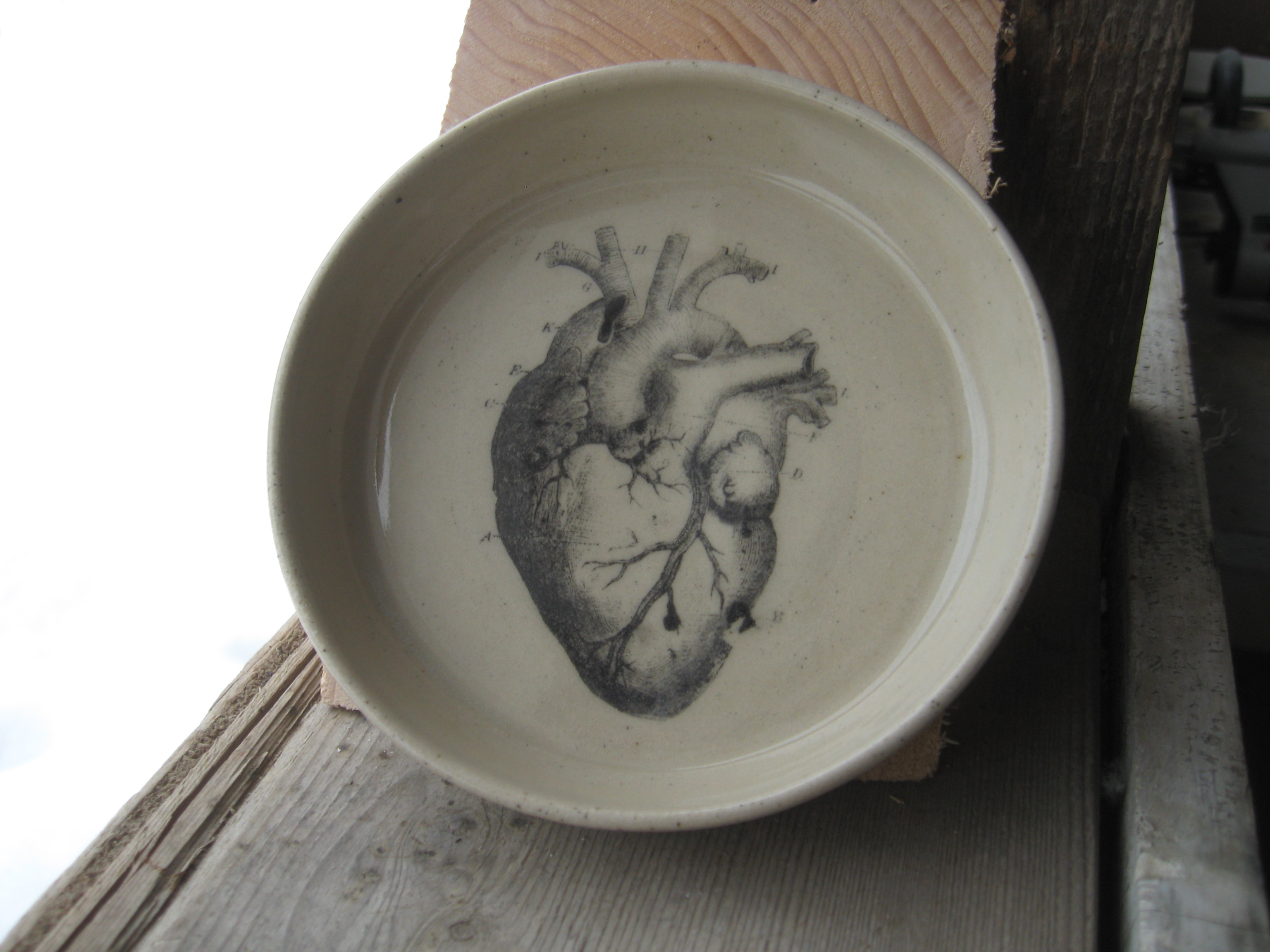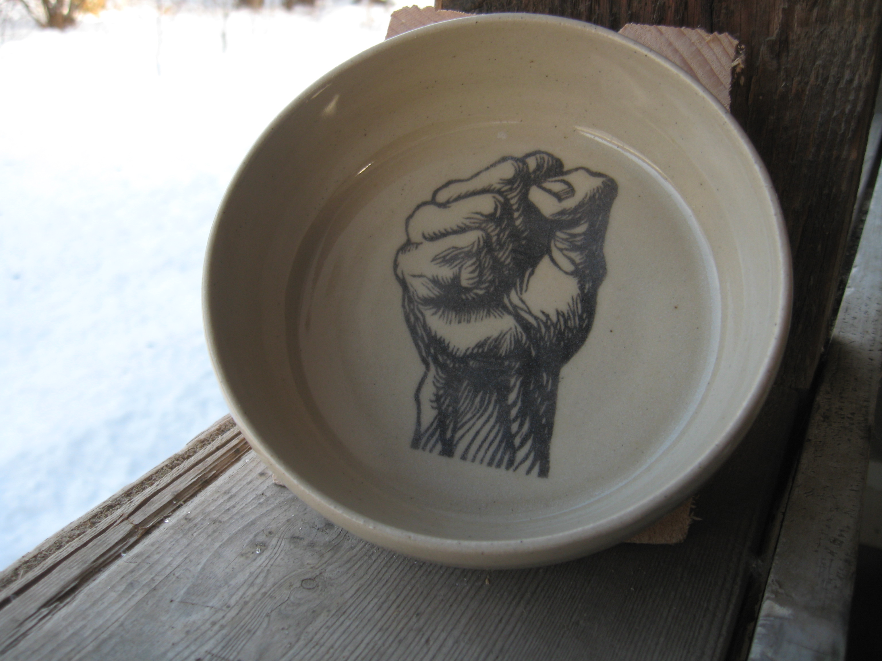 The next mug indicates my newer style of leaving the external portion of the mug more pure with only clear glaze over an image. This not only allows me more room for the image (hence, a larger image) but it also provides a greater contrast between the black of the image and the natural colour of the clay.