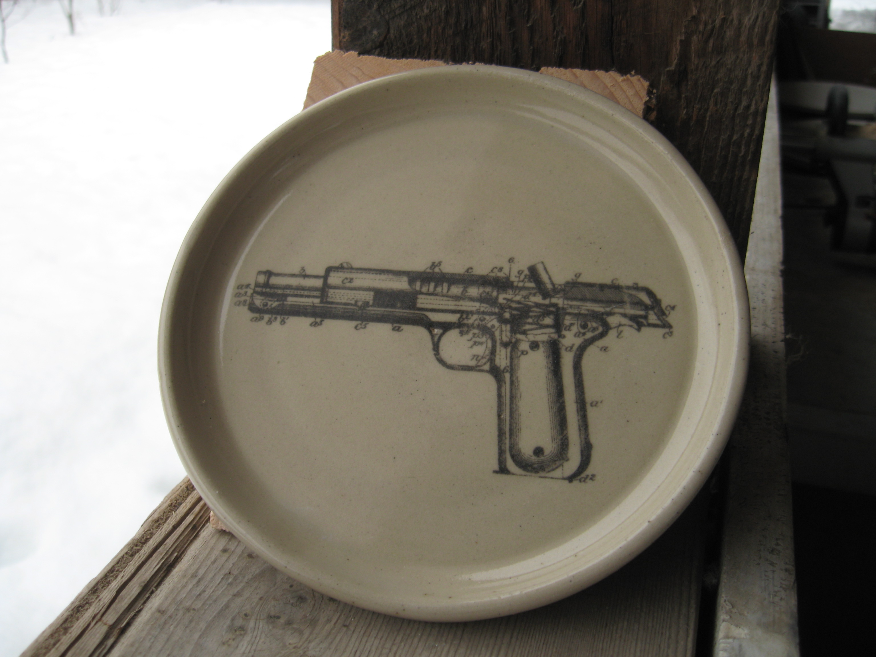 This medium-sized plate is gracefully displaying an exposed human male torso…mmm, disturbingly attractive.